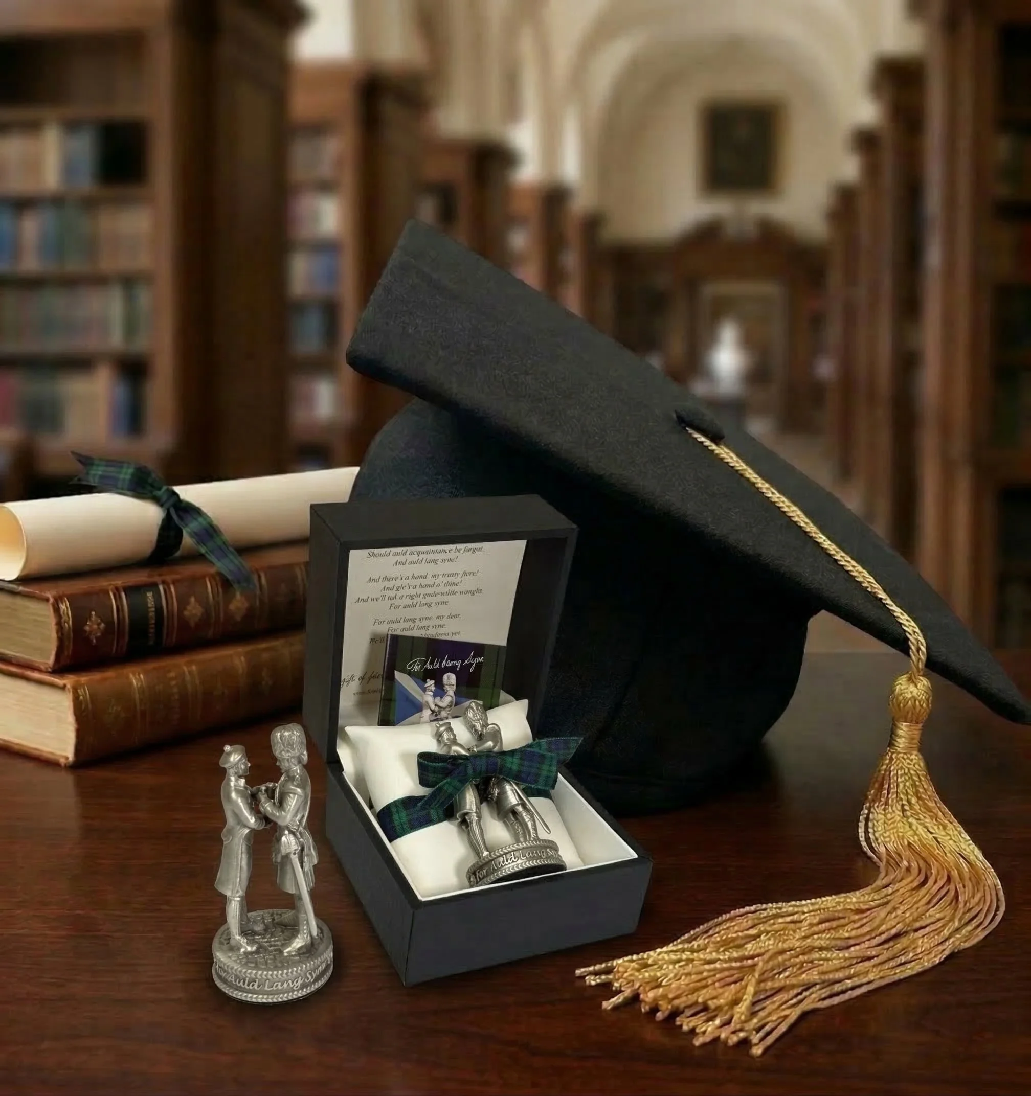 At Stirling1314, our solid pewter, gift-boxed For Auld Lang Syne figure captures this sentiment beautifully, conveying the emotional heart of Burns’ timeless words through detailed craftsmanship and storytelling. It is about cherishing friendships and sharing experiences. The piece itself offers a thoughtful way of recognising the traditions graduates make as they step forward onto the stage of life.